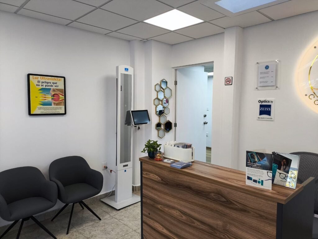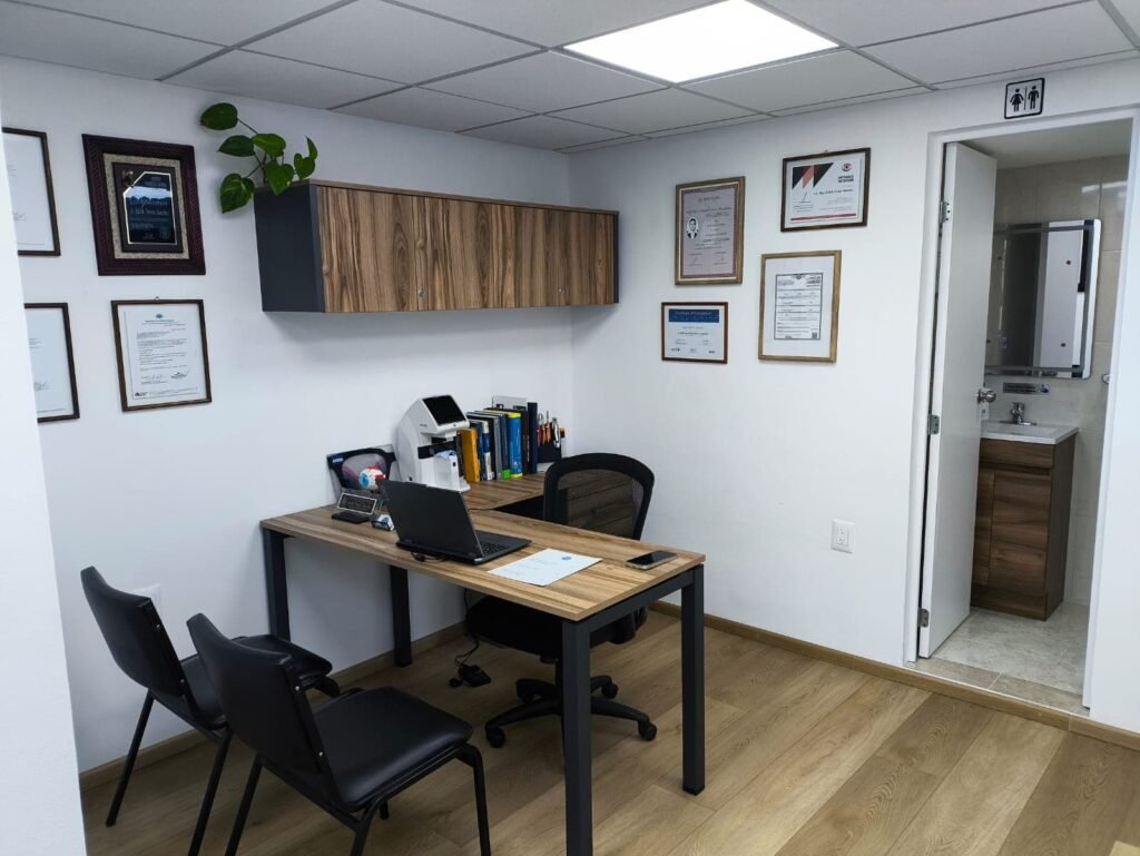 Cuidamos la experiencia desde el primer momento. Al llegar te recibe un espacio ordenado y agradable, con recepción y un área de espera cómoda, pensada para que tu visita se sienta tranquila y sin prisas. La consulta se realiza con equipo de tecnología de punta, porque creemos que una buena evaluación empieza por mediciones confiables y un proceso completo.
